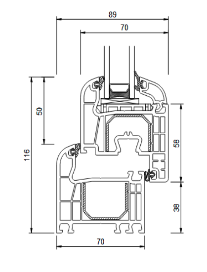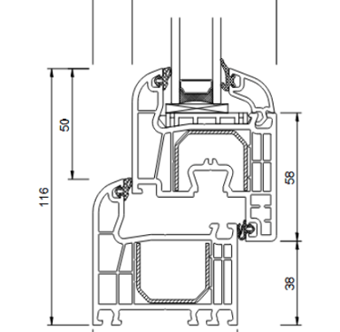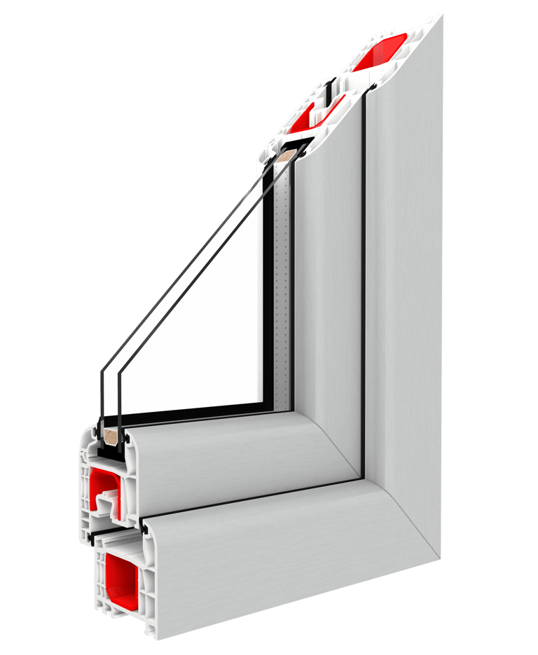 1,5 mm stalowe wzmocnienie ościeżnicy i skrzydła (2 mm w przypadku skrzydła drzwi balkonowych) w kształcie „ceownika”